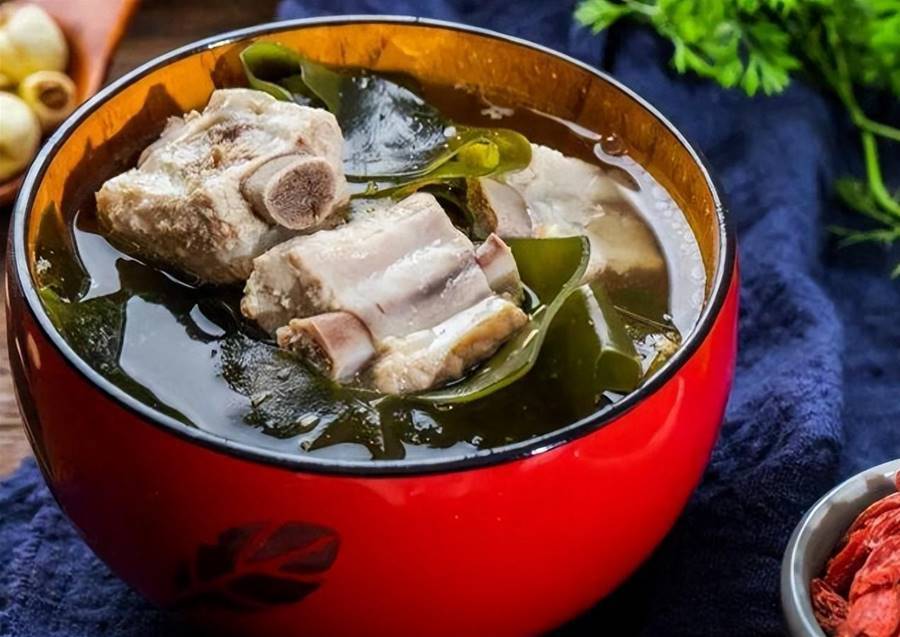海帶用海帶結或者海帶片都行,泡發后洗凈。排骨冷水入鍋焯水,去掉血沫,再撈出排骨洗凈。