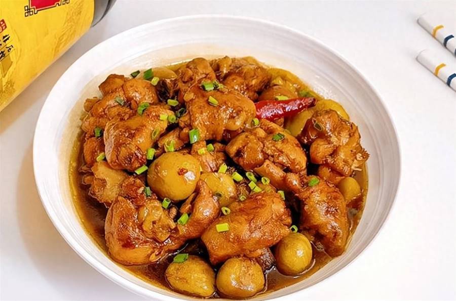 雞塊用溫水洗凈,瀝干水分。板栗洗凈,煮五分鐘,再趁熱去掉外殼。